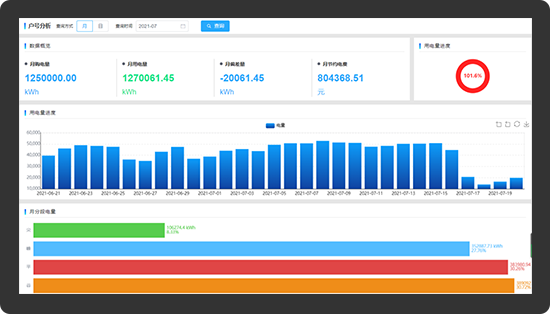 用电管理平台拥有负荷监测、负荷建模、电力大数据分析等核心技术。通过应用物联网、云计算、移动互联网和大数据分析技术,降低企业配用电管理成本。集中建设在云端的云平台监控中心,为用户提供全天候监测服务,用户可通过PC端及时获知本企业配用电信息。基于采集到的各类能耗数据,智能用电管理系统可以实现包括概负荷统计、负荷预测、审计与报表等能效管理、故障与安全监测及电能质量监测功能。