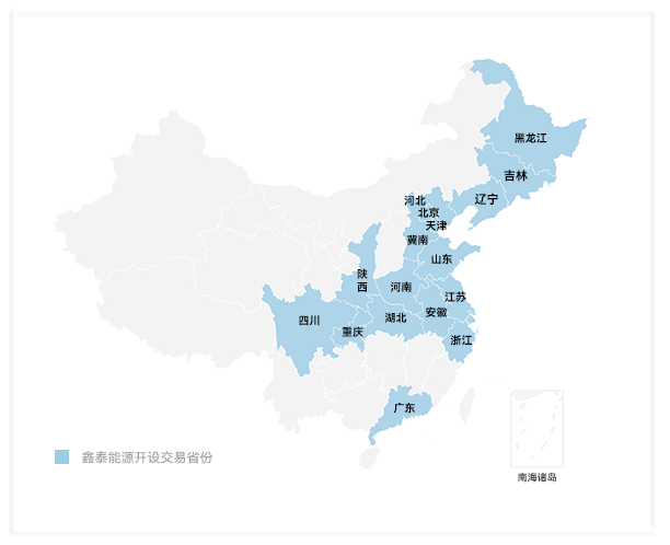 鑫泰能源在全国范围内开设北京、天津、冀北、冀南、山东、黑龙江、吉林、河南、安徽、湖北、浙江、广东、重庆、陕西等十余个省份电力市场化交易。